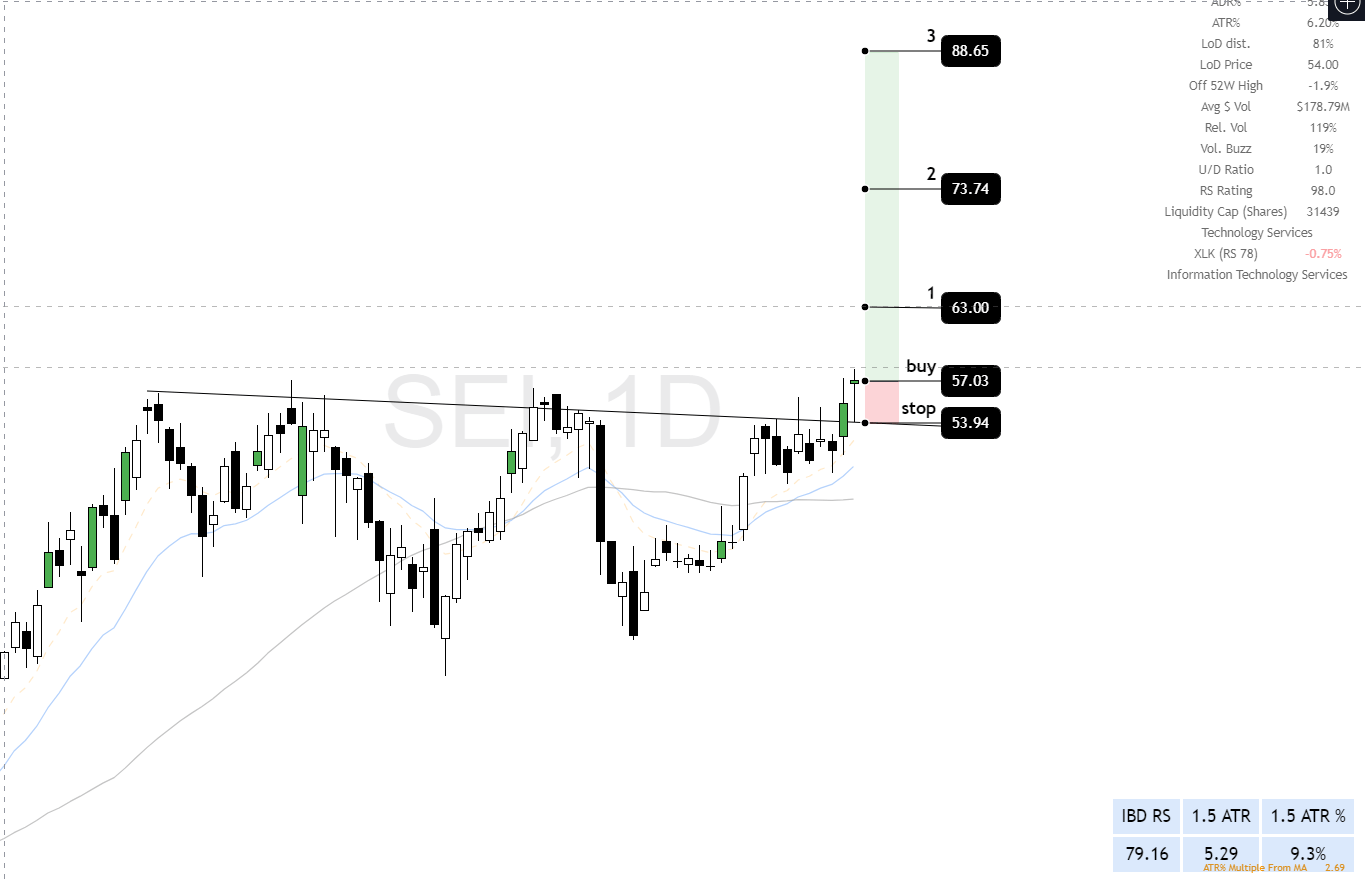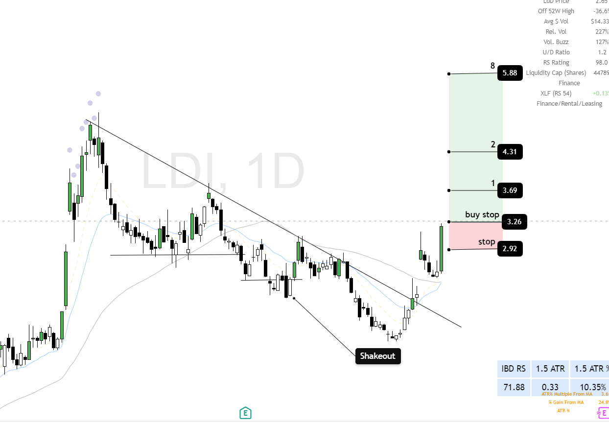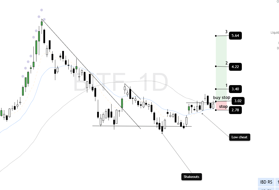 ⚠️ Note: If this breaks out, wait for a close under the 20-day Moving Average to get out, so that you get the best of the move!